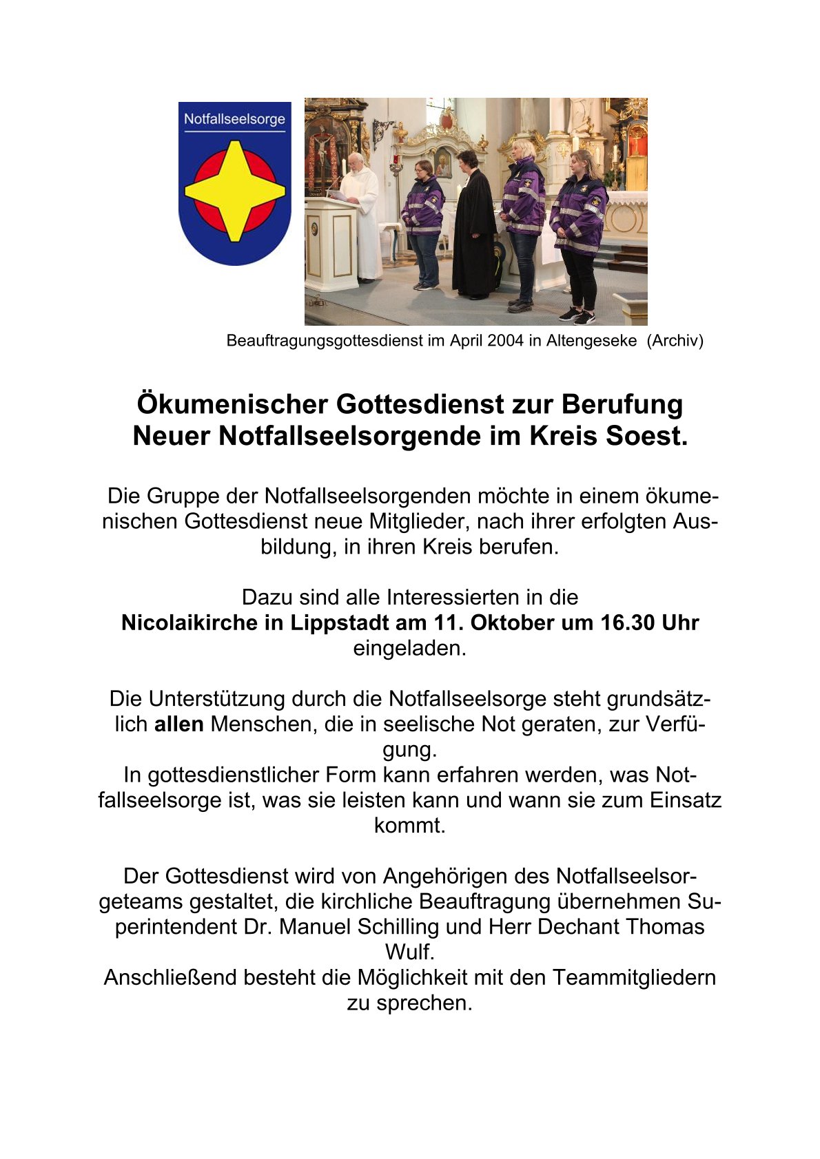 Ökumenischer Gottesdienst zur Berufung neuer Notfallseelsorgende